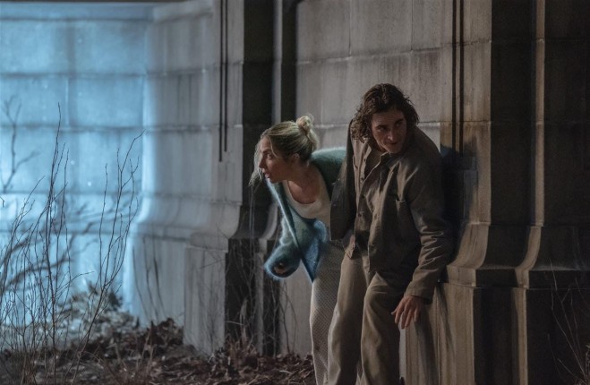 Но самым впечатляющим, как и был, остается Хоакин, проделавший актерский подвиг дважды. Его впалая грудь, сероватая кожа и торчащие лопатки завораживают. Когда он в одиночестве истерично смеется под дождем во дворе «Аркхема», невольно опускаешь глаза. В какой-то момент его герой фантазирует, что они с Ли ведут собственное вечернее шоу и внезапно задаются вопросом, не скучают ли их зрители. Аудитория, к тому моменту и правда пригорюнившаяся, оживает — чувство болезненного, язвительного юмора не изменило Филлипсу. И в этой сцене, и во всех остальных Фениксу с Леди Гагой комфортно в компании друг друга, хотя вместо Бонни и Клайда мы получаем скорее Дэвида и Сид из «Легиона». Исключением становится разве что сцена провального побега, когда и мюзикл работает, и наша парочка на короткое время зажигается своей авантюрой, отдаваясь взрывной выходке. И все же по-настоящему раскрывается Артур только наедине с самим собой, а Хоакин договаривает все важное, что осталось подвешенным в воздухе после первой части.