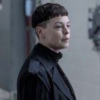 Эта короткостриженая милитаристка похожа на предводительшу мусорщиков, ту сто вызывала вертолет в оригинальных ходячих.