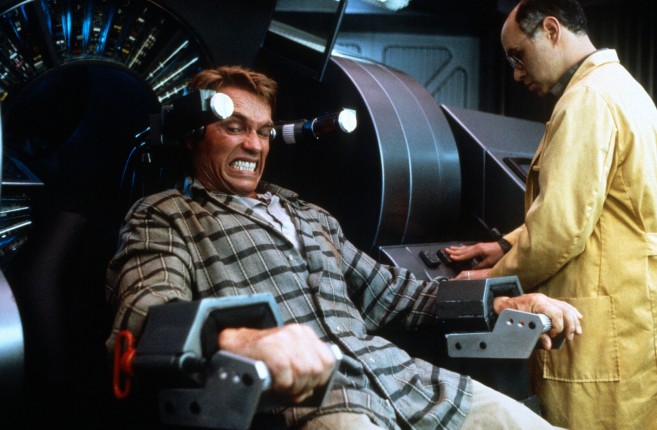 В этом фильме главный герой Дуглас Куэйд (Шварценеггер) живет спокойной жизнью строителя на Земле, пока однажды загадочные видения не приводят его в компанию Rekall, внедряющую искусственные воспоминания. Во время процедуры раскрывается шокирующая правда: мозг Куэйда хранит память агента Хауэрда. Дуглас оказывается втянутым в борьбу с марсианским диктатором Кохаагеном (Ронни Кокс), пытающимся предотвратить превращение атмосферы Марса в пригодную для дыхания землян. Преодолев многочисленные препятствия, Куэйд побеждает врага и успешно активирует механизм терраформации, открывая новую эру освоения Красной планеты.