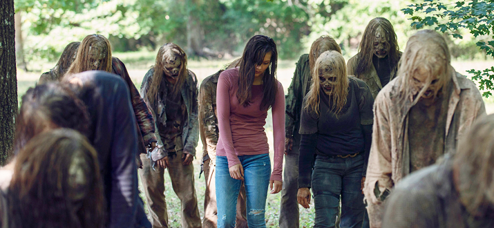 В первых сезонах для того, чтобы скрыться от зомби необходимо было полностью измазаться в их крови и кишках. В девятом сезоне достаточно просто одеть заношенную кожу ходячего.... такой бред...